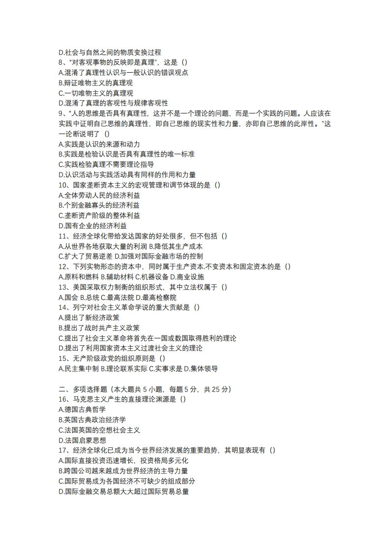 河西学院《马克思主义基本原理》2021-2022学年第一学期期末试卷猴哥13天前发布关注私信0.16MB3页0268河西学院《马克思主义基本原理》2021-2022学年第一学期期末试卷此内容为免费资源,请登录后查看¥0 登录查看免费资源 第1页 / 共3页 第2页 / 共3页 第3页 / 共3页 已完成全部阅读,共3页 © 版权声明文章版权归作者所有,未经允许请勿转载。THE END《河西学院》期中期末历年真题期末试卷 喜欢就支持一下吧点赞8赞赏 分享QQ空间微博QQ好友海报分享复制链接收藏