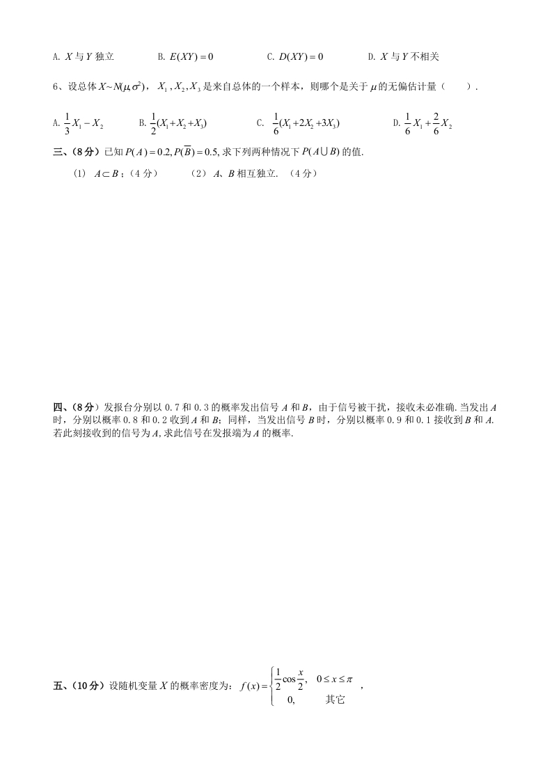 西南科技大学《概率论与数理统计B》2020-2021第一学期期末试卷猴哥13天前发布关注私信0.23MB5页0256西南科技大学《概率论与数理统计B》2020-2021第一学期期末试卷此内容为免费资源,请登录后查看¥0 登录查看免费资源 第1页 / 共5页 第2页 / 共5页 第3页 / 共5页 该文档为免费文档,您可直接下载完整版进行阅读 © 版权声明文章版权归作者所有,未经允许请勿转载。THE END《西南科技大学》期中期末历年真题期末试卷 喜欢就支持一下吧点赞6赞赏 分享QQ空间微博QQ好友海报分享复制链接收藏