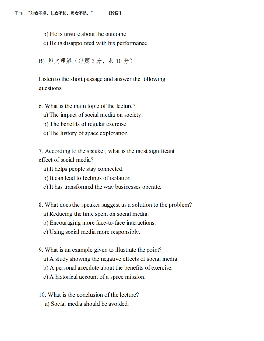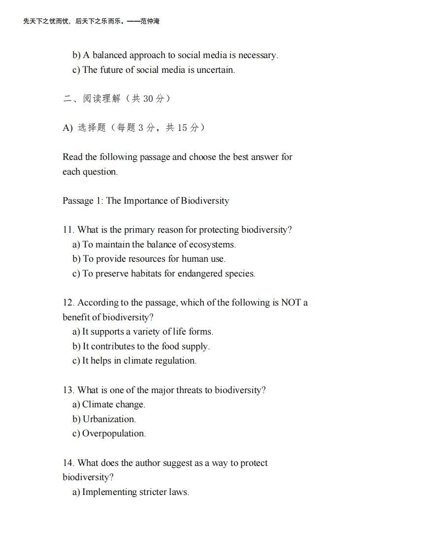 2025年大学英语期末考试试题及答案猴哥10天前发布关注私信0.12MB6页033122025年大学英语期末考试试题及答案此内容为免费资源,请登录后查看¥0 登录查看免费资源 第1页 / 共6页 第2页 / 共6页 第3页 / 共6页 该文档为免费文档,您可直接下载完整版进行阅读 © 版权声明文章版权归作者所有,未经允许请勿转载。THE END期末试卷 喜欢就支持一下吧点赞12赞赏 分享QQ空间微博QQ好友海报分享复制链接收藏