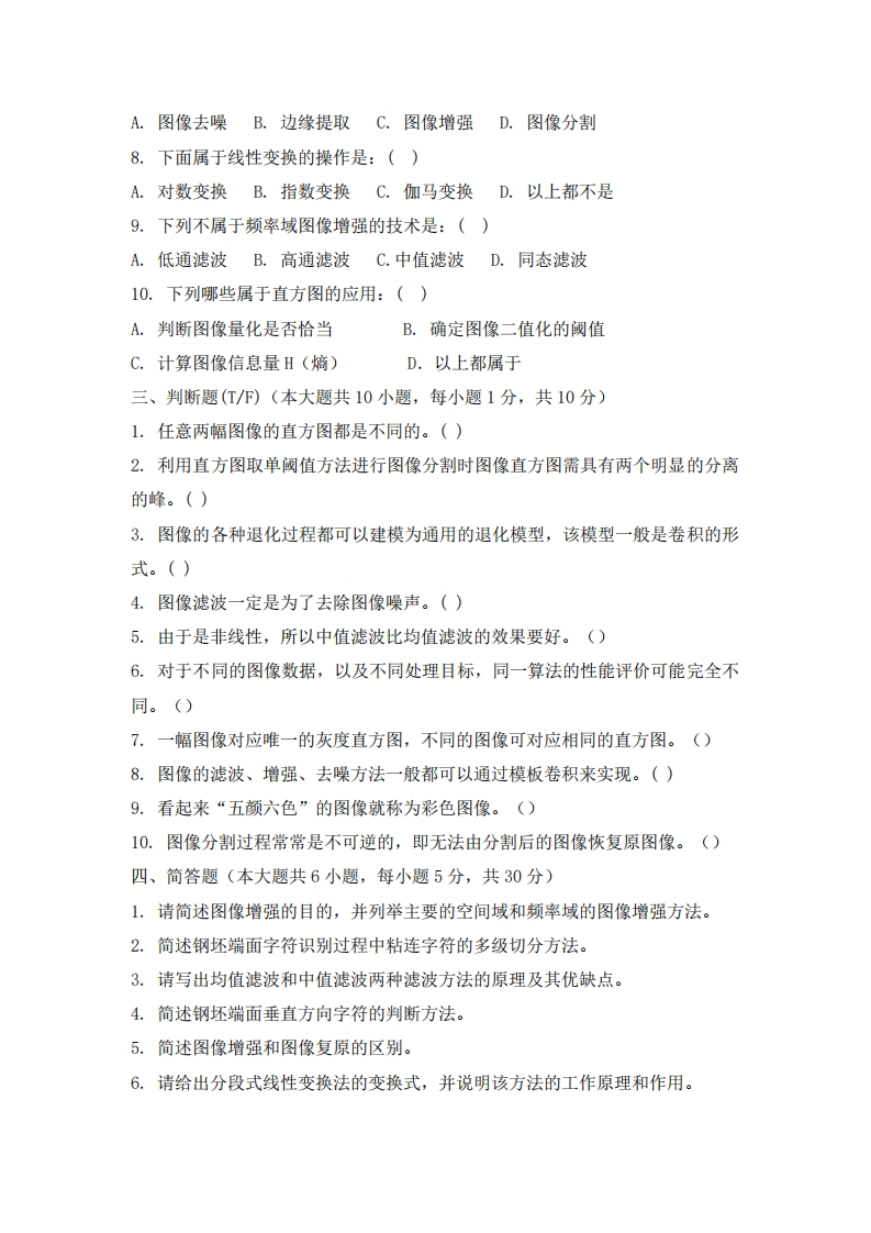 南京邮电大学《数字图像处理》2020-2021学年第一学期期末试卷猴哥12天前发布关注私信85.31KB3页0266南京邮电大学《数字图像处理》2020-2021学年第一学期期末试卷此内容为免费资源,请登录后查看¥0 登录查看免费资源 第1页 / 共3页 第2页 / 共3页 第3页 / 共3页 已完成全部阅读,共3页 © 版权声明文章版权归作者所有,未经允许请勿转载。THE END期末试卷 喜欢就支持一下吧点赞6赞赏 分享QQ空间微博QQ好友海报分享复制链接收藏