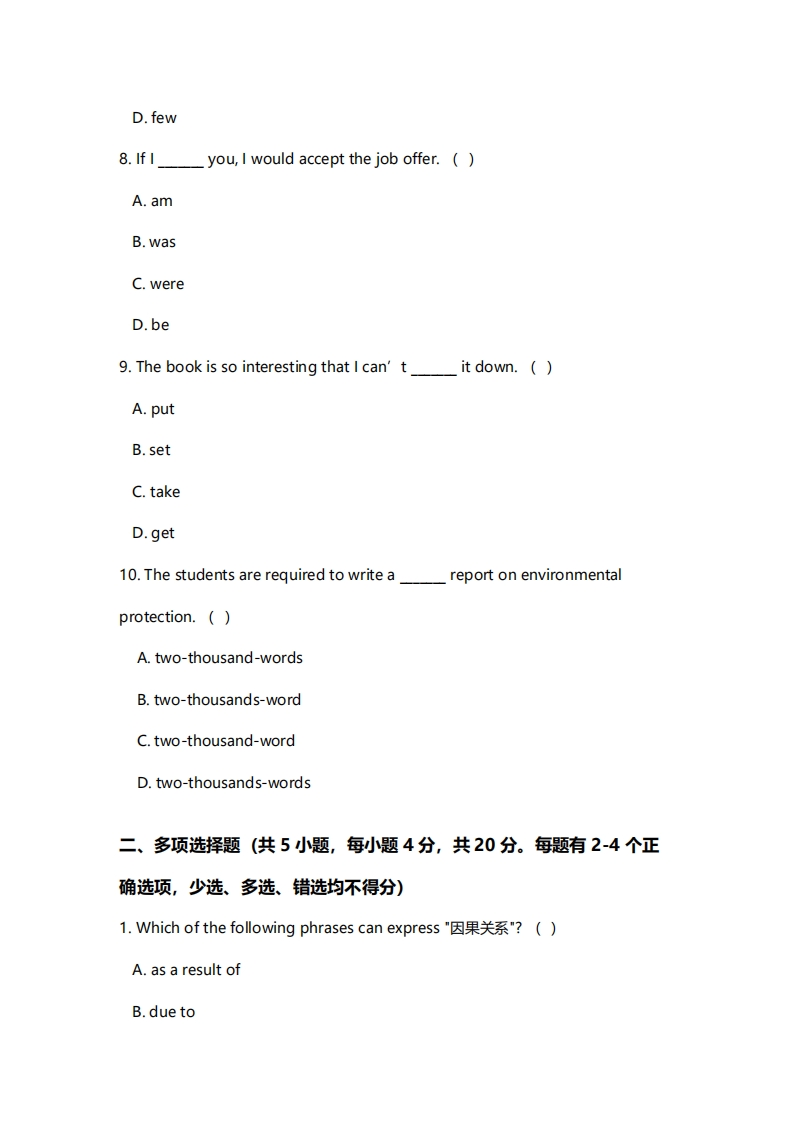 周口师范学院《大学英语》2022-2023学年第一学期期末试卷猴哥10天前发布关注私信0.17MB6页0296周口师范学院《大学英语》2022-2023学年第一学期期末试卷此内容为免费资源,请登录后查看¥0 登录查看免费资源 第1页 / 共6页 第2页 / 共6页 第3页 / 共6页 该文档为免费文档,您可直接下载完整版进行阅读 © 版权声明文章版权归作者所有,未经允许请勿转载。THE END期末试卷 喜欢就支持一下吧点赞6赞赏 分享QQ空间微博QQ好友海报分享复制链接收藏