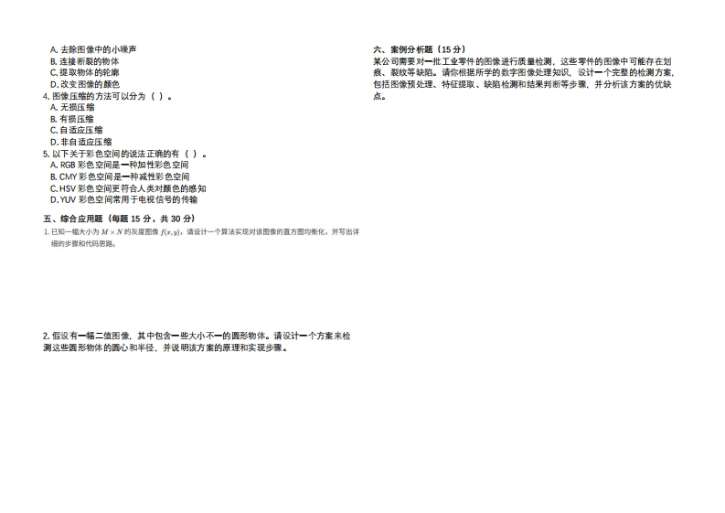 南华大学《数字图像处理》2023-2024学年第一学期期末试卷猴哥10天前发布关注私信0.31MB2页04310南华大学《数字图像处理》2023-2024学年第一学期期末试卷此内容为免费资源,请登录后查看¥0 登录查看免费资源 第1页 / 共2页 第2页 / 共2页 已完成全部阅读,共2页 © 版权声明文章版权归作者所有,未经允许请勿转载。THE END期末试卷 喜欢就支持一下吧点赞10赞赏 分享QQ空间微博QQ好友海报分享复制链接收藏