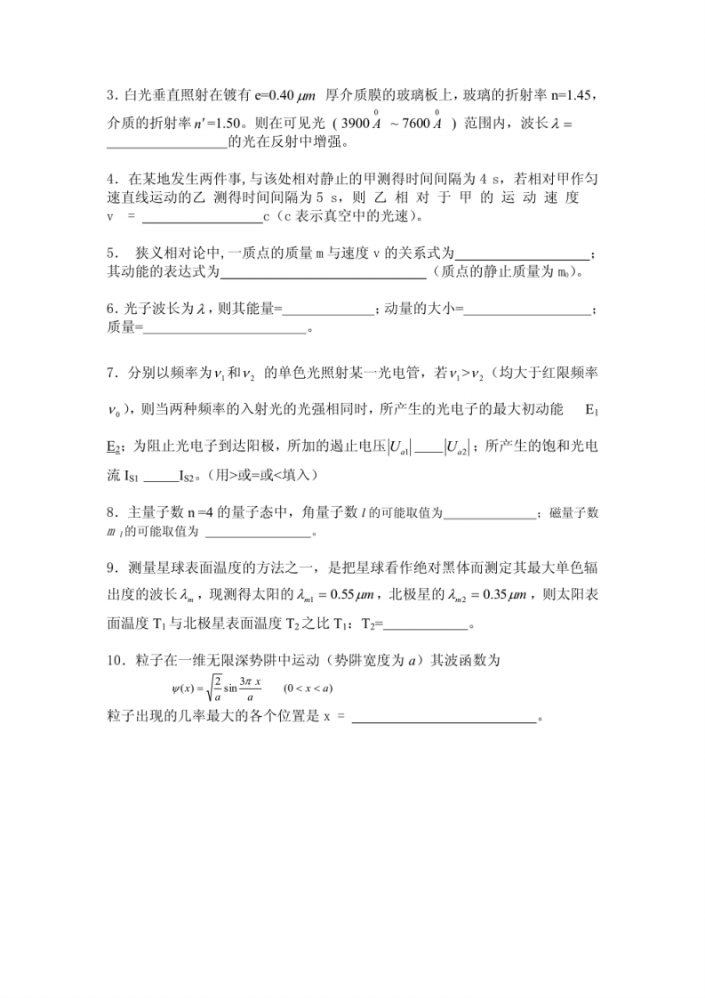 大学物理(下)期末考试试卷猴哥10天前发布关注私信0.70MB4页04511大学物理(下)期末考试试卷此内容为免费资源,请登录后查看¥0 登录查看免费资源 第1页 / 共4页 第2页 / 共4页 第3页 / 共4页 该文档为免费文档,您可直接下载完整版进行阅读 © 版权声明文章版权归作者所有,未经允许请勿转载。THE END期末试卷 喜欢就支持一下吧点赞11赞赏 分享QQ空间微博QQ好友海报分享复制链接收藏