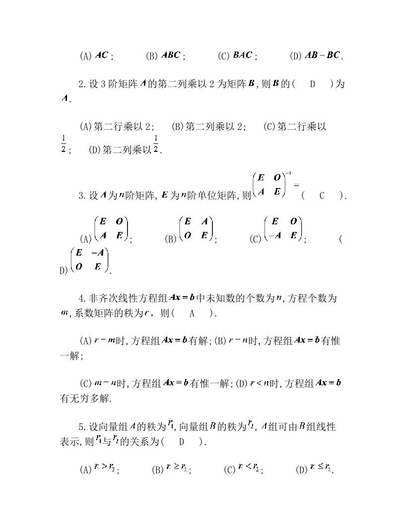 宿迁学院《线性代数》2020-2021第一学期期末试卷猴哥10天前发布关注私信0.33MB11页0228宿迁学院《线性代数》2020-2021第一学期期末试卷此内容为免费资源,请登录后查看¥0 登录查看免费资源 第1页 / 共11页 第2页 / 共11页 第3页 / 共11页 该文档为免费文档,您可直接下载完整版进行阅读 © 版权声明文章版权归作者所有,未经允许请勿转载。THE END期末试卷 喜欢就支持一下吧点赞8赞赏 分享QQ空间微博QQ好友海报分享复制链接收藏