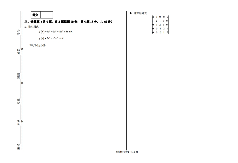 山西大学《线性代数》2018-2019学年第一学期期末试卷A卷猴哥10天前发布关注私信0.11MB4页03812山西大学《线性代数》2018-2019学年第一学期期末试卷A卷此内容为免费资源,请登录后查看¥0 登录查看免费资源 第1页 / 共4页 第2页 / 共4页 第3页 / 共4页 该文档为免费文档,您可直接下载完整版进行阅读 © 版权声明文章版权归作者所有,未经允许请勿转载。THE END期末试卷# nNotice: Undefined variable: in in D:\\wwwroot\\www.xuexihome.com\\wp-content\\plugins\\jikewenku-PRO\\pages\\batch-newposts.php on line 319n 喜欢就支持一下吧点赞12赞赏 分享QQ空间微博QQ好友海报分享复制链接收藏