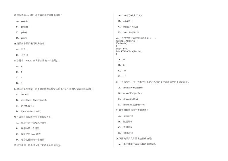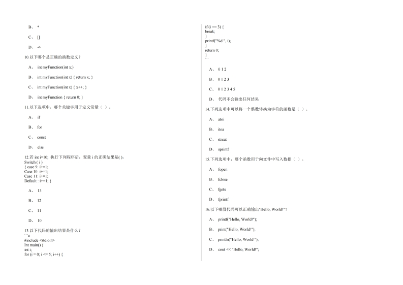 太原工业学院《C语言程序设计》2023-2024第一学期期末试题猴哥10天前发布关注私信3.88MB10页0487太原工业学院《C语言程序设计》2023-2024第一学期期末试题此内容为免费资源,请登录后查看¥0 登录查看免费资源 第1页 / 共10页 第2页 / 共10页 第3页 / 共10页 该文档为免费文档,您可直接下载完整版进行阅读 © 版权声明文章版权归作者所有,未经允许请勿转载。THE END期末试卷 喜欢就支持一下吧点赞7赞赏 分享QQ空间微博QQ好友海报分享复制链接收藏