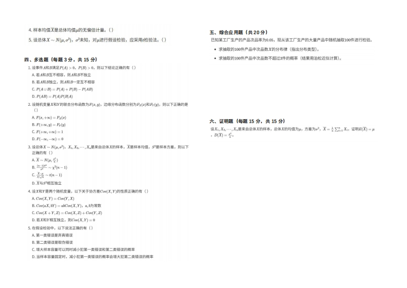 江西农业大学《概率论与数理统计》2023-2024学年第一学期期末试卷猴哥9天前发布关注私信0.34MB2页0426江西农业大学《概率论与数理统计》2023-2024学年第一学期期末试卷此内容为免费资源,请登录后查看¥0 登录查看免费资源 第1页 / 共2页 第2页 / 共2页 已完成全部阅读,共2页 © 版权声明文章版权归作者所有,未经允许请勿转载。THE END期末试卷# nNotice: Undefined variable: in in D:\\wwwroot\\www.xuexihome.com\\wp-content\\plugins\\jikewenku-PRO\\pages\\batch-newposts.php on line 319n 喜欢就支持一下吧点赞6赞赏 分享QQ空间微博QQ好友海报分享复制链接收藏