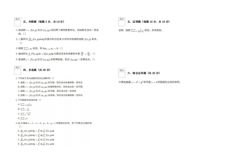 河南师范大学《高等数学II》2023-2024学年第一学期期末试卷猴哥10天前发布关注私信0.25MB2页0258河南师范大学《高等数学II》2023-2024学年第一学期期末试卷此内容为免费资源,请登录后查看¥0 登录查看免费资源 第1页 / 共2页 第2页 / 共2页 已完成全部阅读,共2页 © 版权声明文章版权归作者所有,未经允许请勿转载。THE END期末试卷 喜欢就支持一下吧点赞8赞赏 分享QQ空间微博QQ好友海报分享复制链接收藏