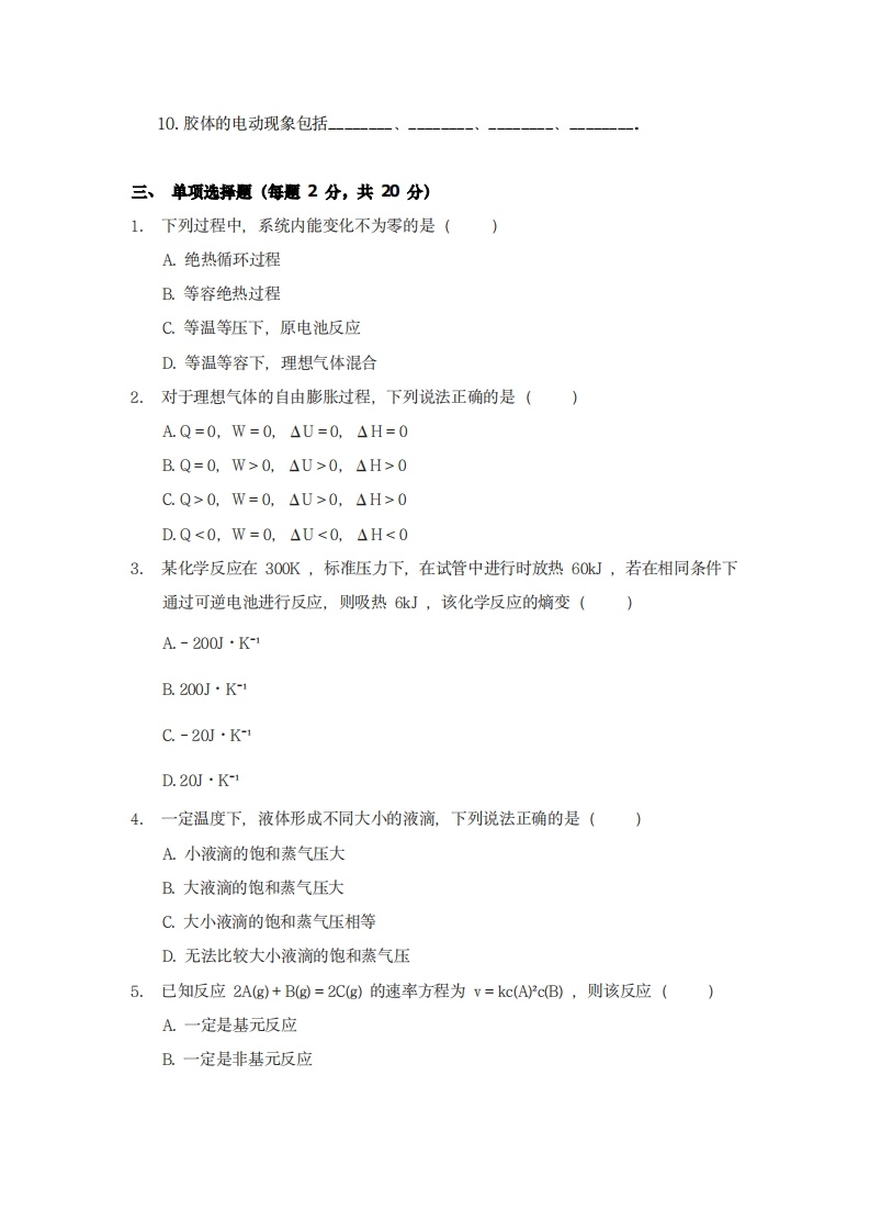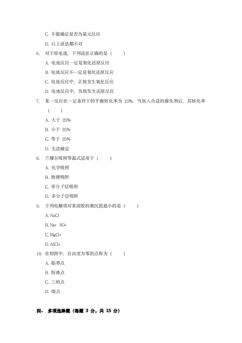 贵州大学《物理化学》2022-2023学年第一学期期末试卷猴哥10天前发布关注私信0.64MB7页0488贵州大学《物理化学》2022-2023学年第一学期期末试卷此内容为免费资源,请登录后查看¥0 登录查看免费资源 第1页 / 共7页 第2页 / 共7页 第3页 / 共7页 该文档为免费文档,您可直接下载完整版进行阅读 © 版权声明文章版权归作者所有,未经允许请勿转载。THE END期末试卷 喜欢就支持一下吧点赞8赞赏 分享QQ空间微博QQ好友海报分享复制链接收藏