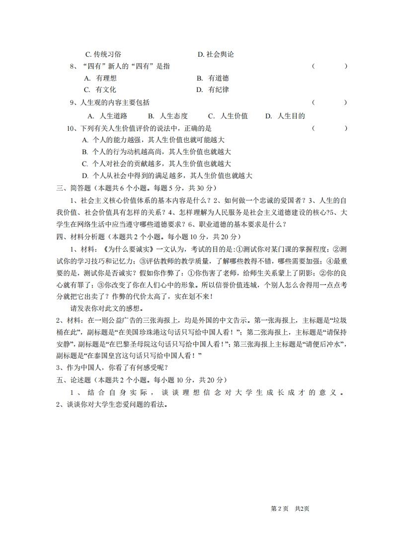 郑州商学院《思想道德与法治》试卷-2016-2017学年第一学期期末试卷(三)卷猴哥10天前发布关注私信0.24MB2页0335郑州商学院《思想道德与法治》试卷-2016-2017学年第一学期期末试卷(三)卷此内容为免费资源,请登录后查看¥0 登录查看免费资源 第1页 / 共2页 第2页 / 共2页 已完成全部阅读,共2页 © 版权声明文章版权归作者所有,未经允许请勿转载。THE END期末试卷# nNotice: Undefined variable: in in D:\\wwwroot\\www.xuexihome.com\\wp-content\\plugins\\jikewenku-PRO\\pages\\batch-newposts.php on line 319n 喜欢就支持一下吧点赞5赞赏 分享QQ空间微博QQ好友海报分享复制链接收藏